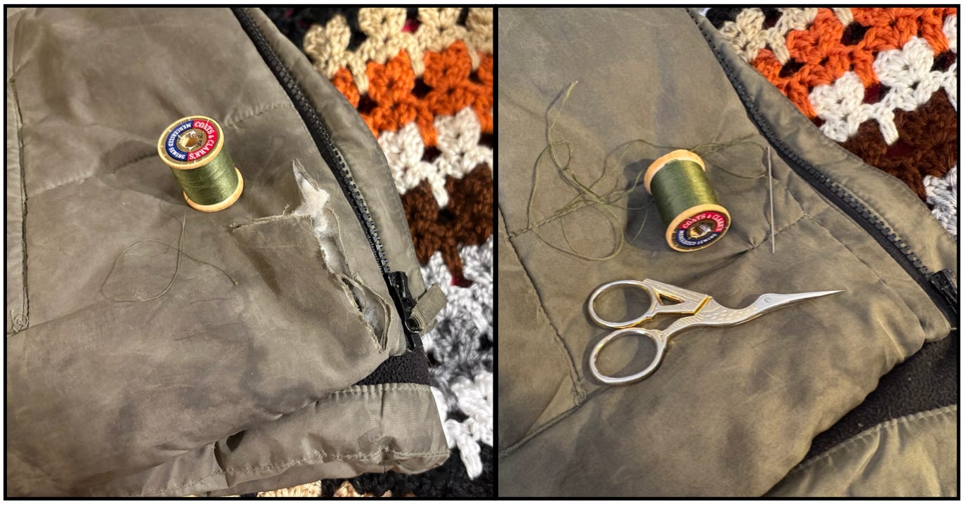 My son tore his coat a few weeks ago & I’ve been meaning to mend it.