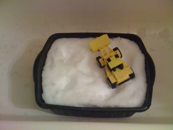 Another great way to let littles play with the snow is to bring a bowlful or bin inside to play with. We have found setting it up in a bathtub or a walk-in shower helps to contain the mess. Diggers, cars, Calico Critters... the possibilities of things they could play with in their own are endless.